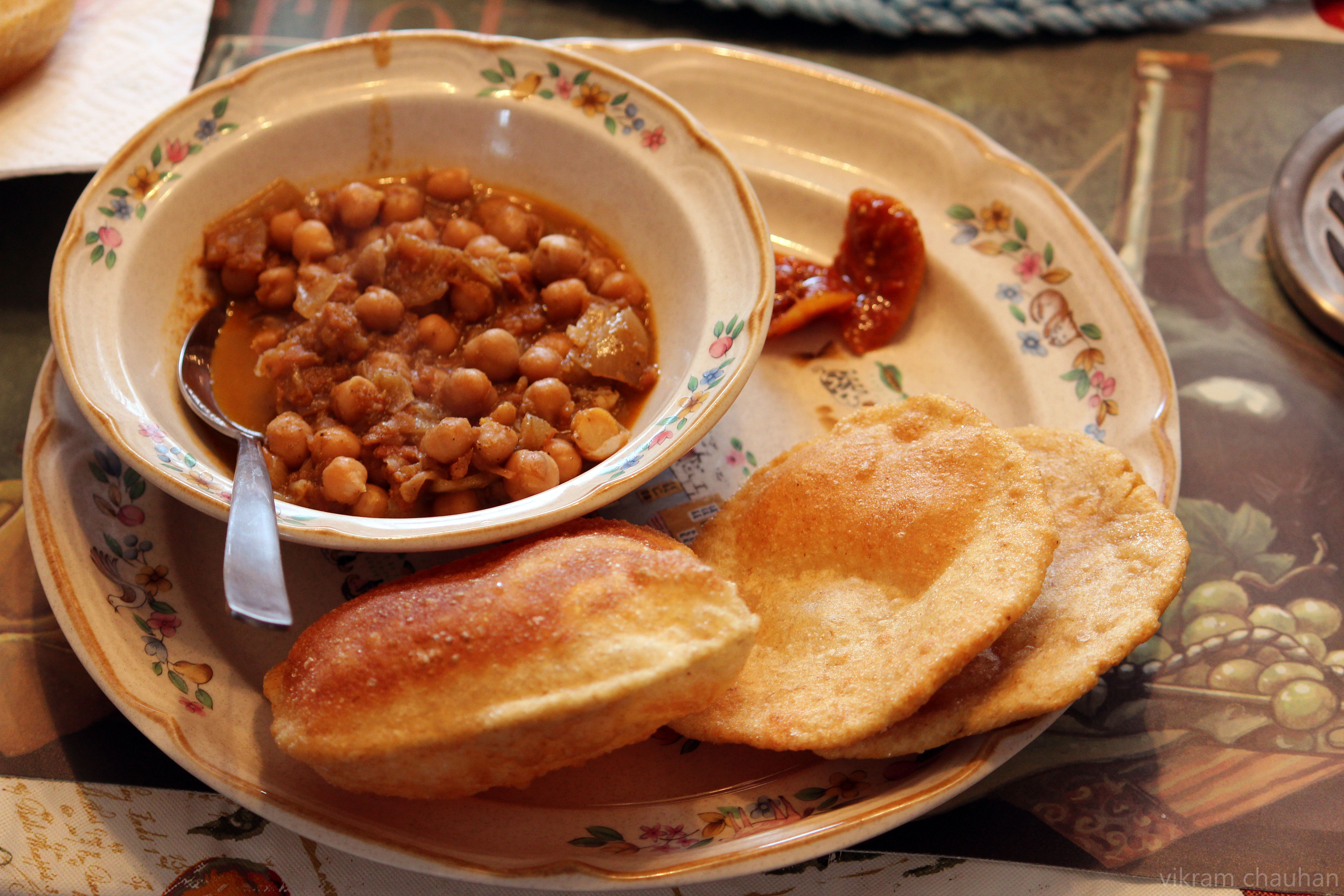 We had a traditional Indian lunch Today on Diwali. In pictures: Chhole (Chickpea Curry) and Poori (Deep fried wheat flatbread).